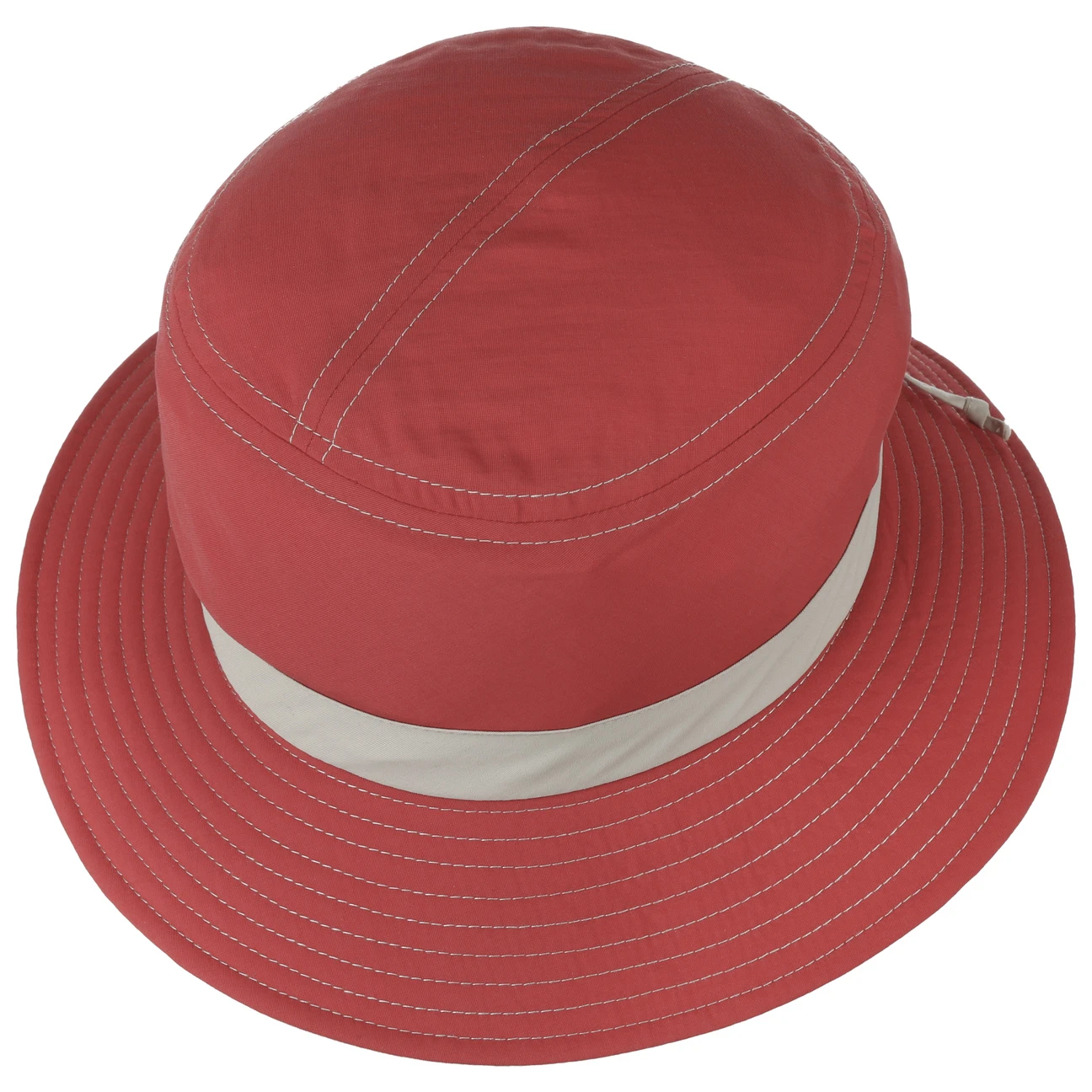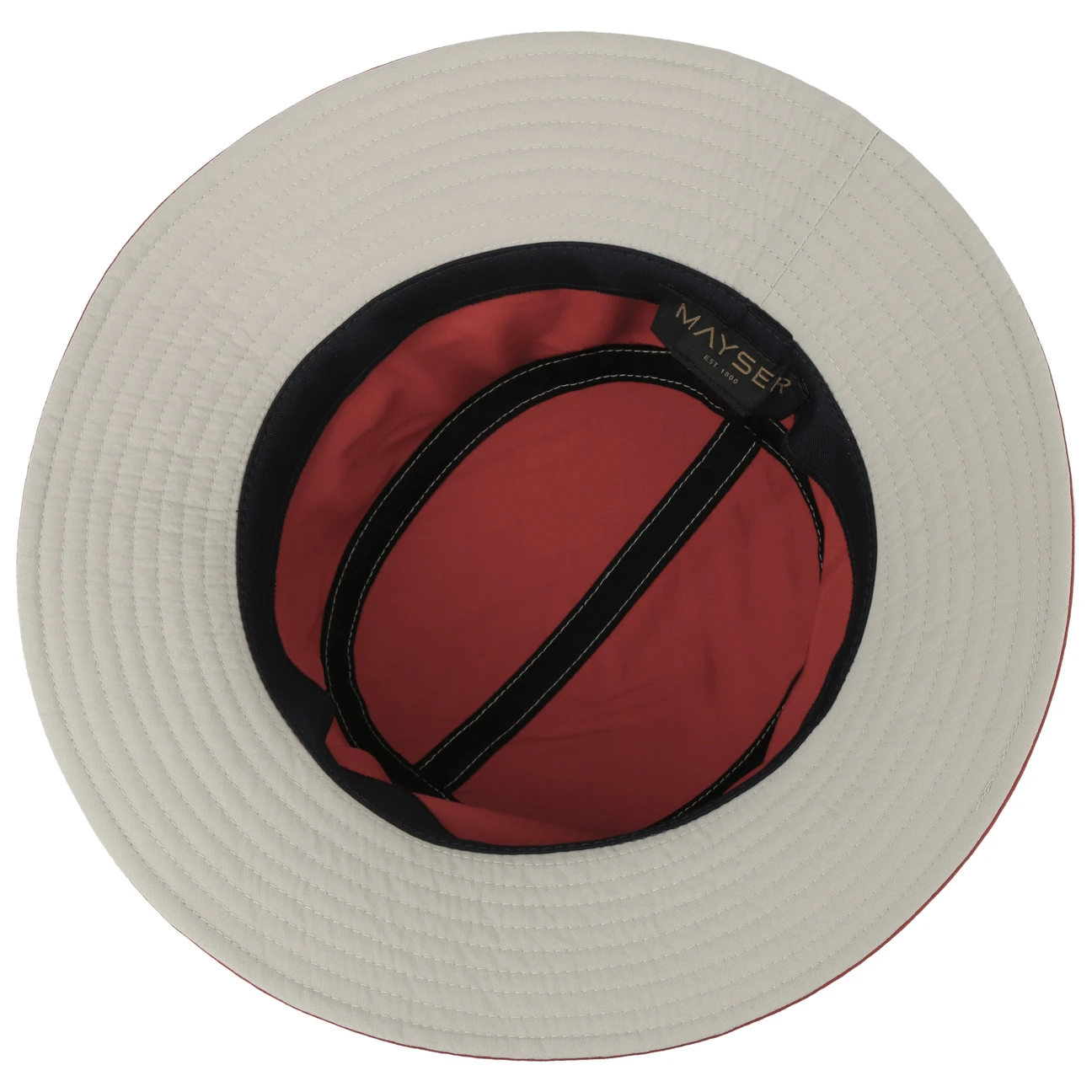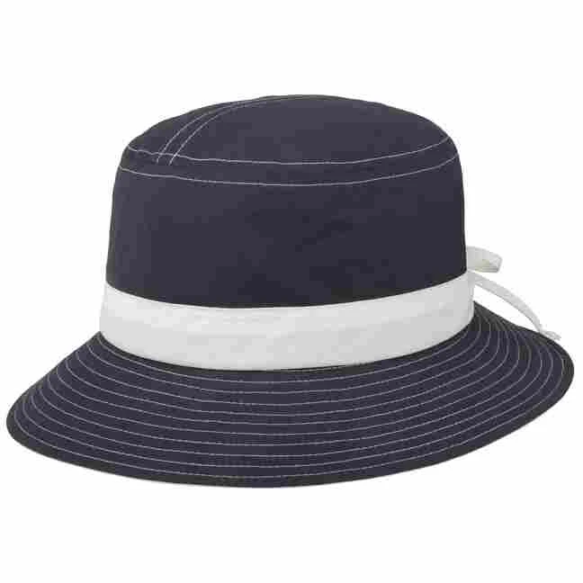 Adretter Sonnenschutz. Markante Ziernähte und ein farblich abgesetztes Hutband mit Schleife am Hinterkopf verleihen dem in der EU hergestellten Bucket Hat von Mayser seiner adrette Ausstrahlung. An sonnigen Tagen spendet der knautschbare und koffertaugliche Stoffhut wohltuenden Schatten und beugt mit einem 60-fachen UV-Schutz zuverlässig einem Sonnenbrand vor. Geprüft nach UV STANDARD 801.