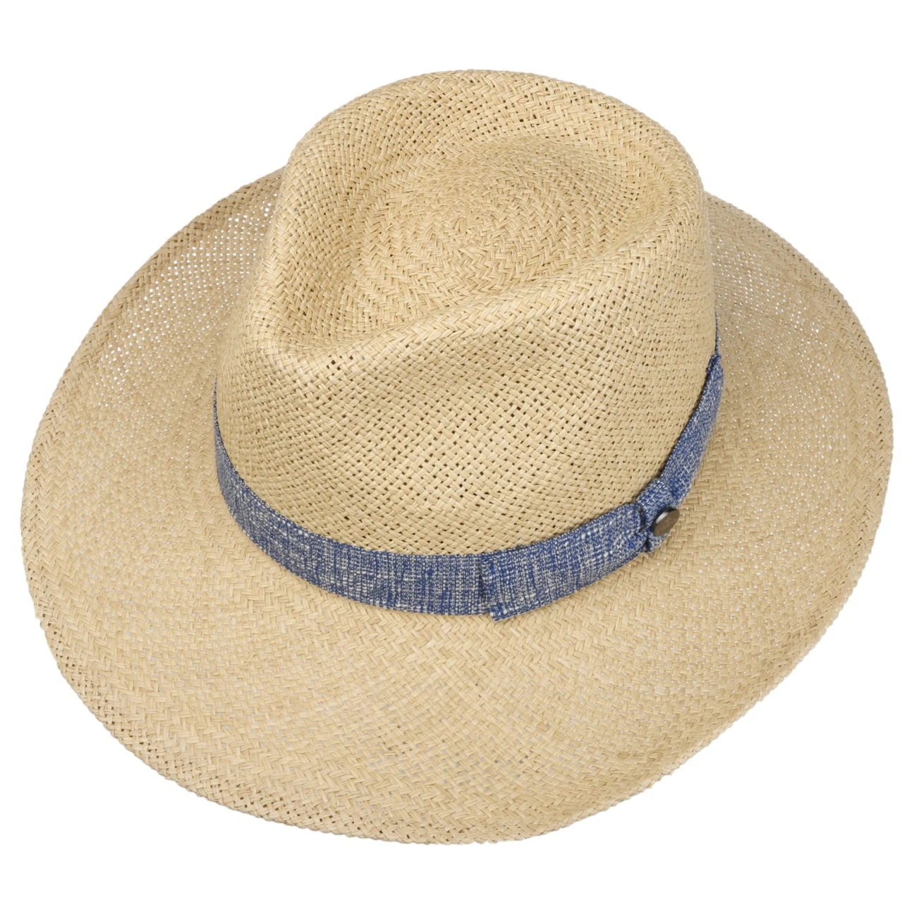 Das blaue Band des Sommers. Die leicht geschwungene Krempe verleiht dem Strohhut von Lierys einen dezenten Westernlook und macht ihn zum modischen Begleiter für die Sommergarderobe. Ein blau meliertes Stoffband mit Schleife und metallenem Markenpin hebt sich kontrastreich vom hellen Untergrund aus 100% Panamastroh ab. In Ecuador von Hand gefertigte Qualität.