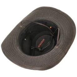Lederoptik zeigt ihre Stärke. Der Westernhut aus beschichteter Baumwolle hält vielen Witterungen und Unwegsamkeiten stand. Anders als Echtleder ist der Stoffhut leicht und nimmt Feuchtigkeit vom Kopf durch ein Futterband auf. Neben seinem antiken Aussehen mit Luftösen aus Messing überzeugt er durch einen formbaren Rand. Stetson stattet den Outdoorhut zusätzlich mit einem Sturmband für einen besseren Sitz aus.