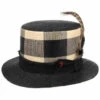Moderner Look für einen Klassiker. Die Melone aus der Lierys Gold Kollektion zeigt sich in einem aparten Karomuster, das sich aus klassischem Houndstooth und farbigen Überkaros zusammensetzt. Die an den Seiten umgeschlagene Krempe lässt ein buntes Paisley-Muster hervorblitzen, das hervorragend zur zweifarbigen Ripsbandgarnitur harmoniert. Handanfertigung aus hochwertiger Wollmischung, weich gefüttert.
