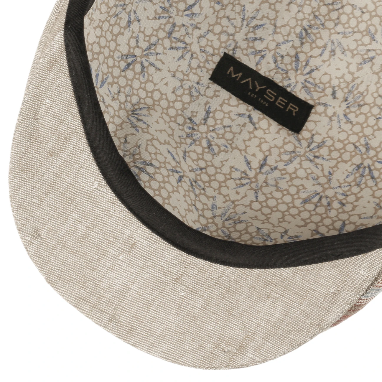Mit einem Innenfutter aus reiner Baumwolle und dem Obermaterial Leinen ist die Schildmütze aus dem Hause Mayser eine elegante wie pragmatische Begleiterin. Dank der raffiniert gewählten Materialien ist innen ein kühler Kopf garantiert. Das dezente Dessin lässt sich mit zahlreichen Outfits harmonisch verbinden.