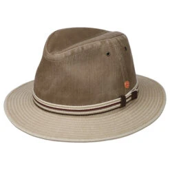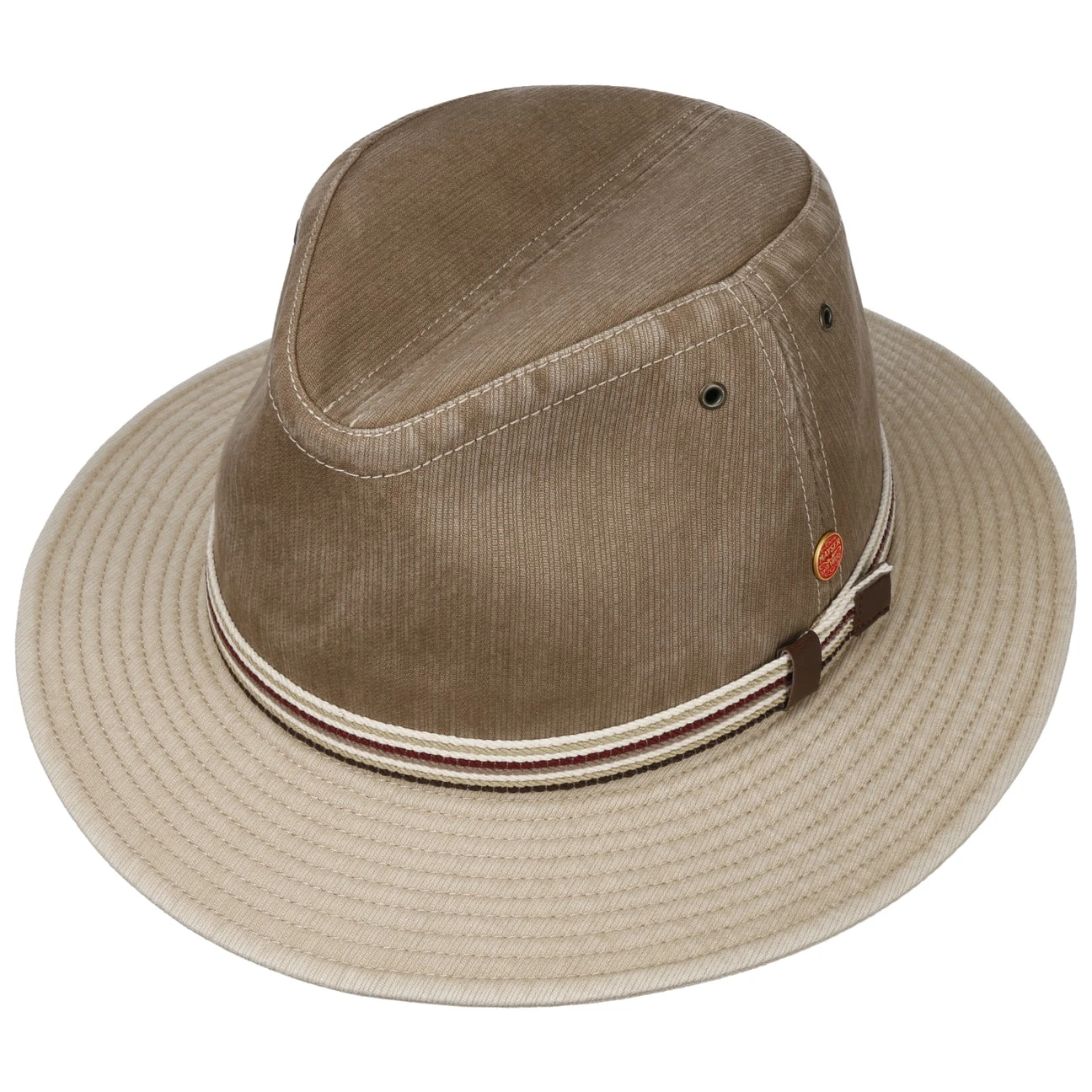 Rustikal und naturverbunden. Dunkle Krone, helle Krempe und ein gestreiftes Garniturband in natürlichen Farben machen den Traveller von Mayser zur vielseitig kombinierbaren Kopfbedeckung. Seine sommertauglichen Eigenschaften verdankt der Stoffhut einem Gewebe aus 100% atmungsaktiver Baumwolle, das mit dem besonders hohen UV-Schutzfaktor 80 ausgestattet ist. Metallene Ösen sorgen für eine zuverlässige Belüftung. EU-Anfertigung.