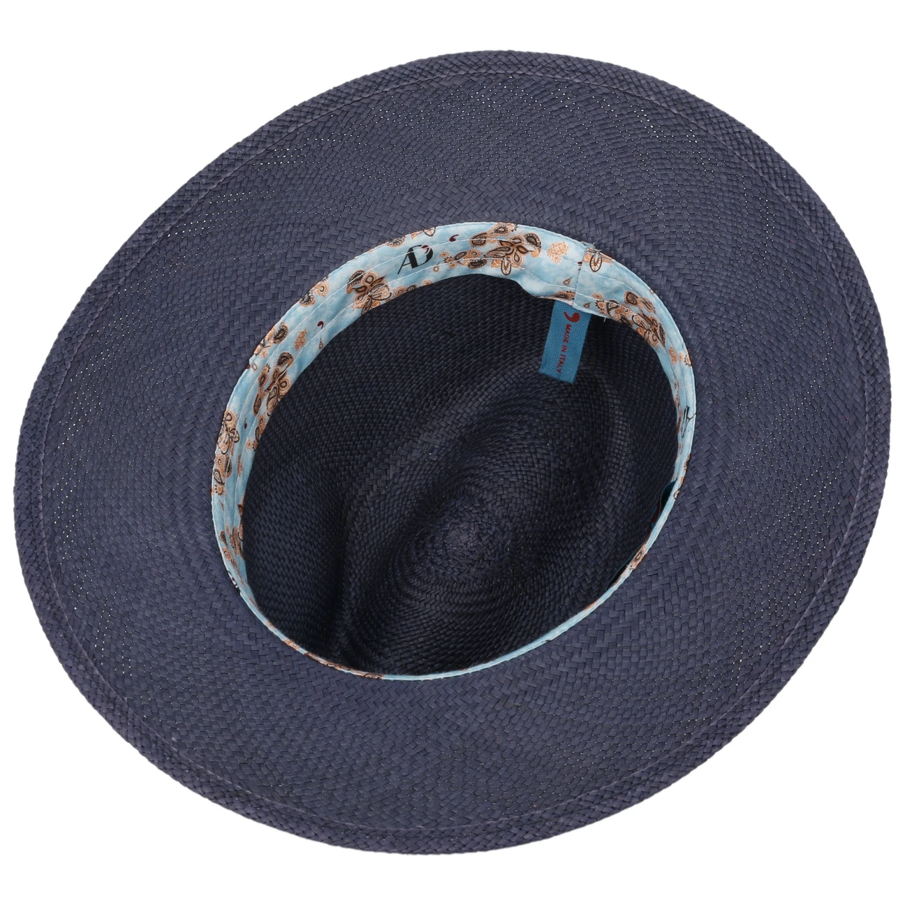 Fantasievoller Sonnenschutz. Eine bunt gemusterte Krone aus 100% Leinen verleiht dem Sommerhut von Alfonso D´Este eine fröhliche Ausstrahlung und stattet ihn mit klimaregulierenden Eigenschaften aus. Die einfarbig abgesetzte Krempe aus 100% Panamastroh spendet dem Gesicht kühlenden Schatten. Eine Ripsbandgarnitur sorgt für einen harmonischen Übergang. In Italien von Hand gefertigt.