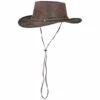Wetterfest ausgerüstet. Ob es ins Outback geht oder auf Streifzug durch die City, der Traveller des australischen Labels Scippi überzeugt stets durch seine ebenso strapazierfähigen wie komfortablen Eigenschaften. Aus 100% Rindleder gefertigt, erweist er sich als äußerst robust. Gestanzte Luftösen lassen derweil eine frische Brise ans Haupt. Mit Stretchfutterband und längenverstellbarem Kinnband.