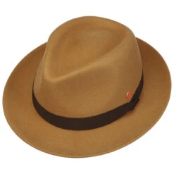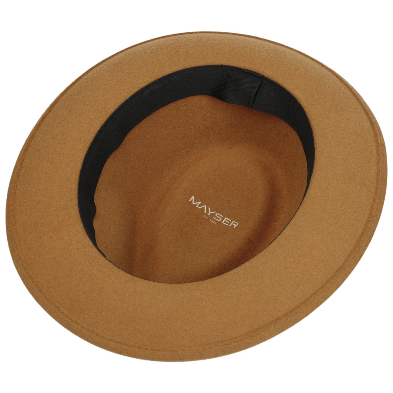 Ganz schön geschmeidig. 100% Wollfilz in kräftiger Farbgebung macht den Fedora aus dem Hause Mayser zum modischen Blickfang. Zur gehobenen Garderobe kombiniert, begleitet er seinen Träger zu zahlreichen Gelegenheiten und verwöhnt das Haupt dabei mit wärmenden Komfort. Die apart gefaltete Ripsbandgarnitur wertet das Design geschmackvoll auf. In der EU von Hand gefertigt.