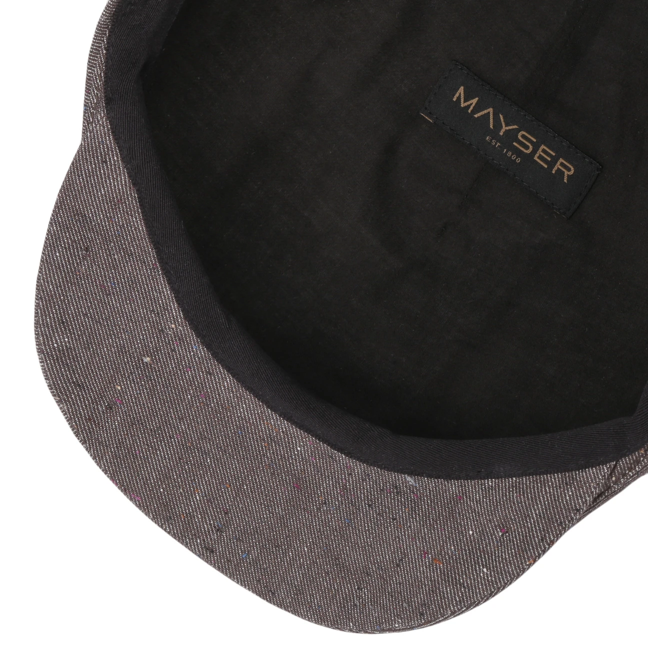 Farbige Akzente. Die Flatcap von Mayser besteht aus einer sommerleichten Mischung von Leinen, Baumwolle und Seide, abgerundet mit flexiblen Elasthanfasern für einen bequemen Tragekomfort. Der modische Denim-Look wird durch kleine Farbtupfen aufgelockert. Zum lässigen Alltagsoutfit kombiniert, strahlt die in der EU gefertigte Schiebermütze sommerliche Leichtigkeit aus. Futter aus 100% Baumwolle.