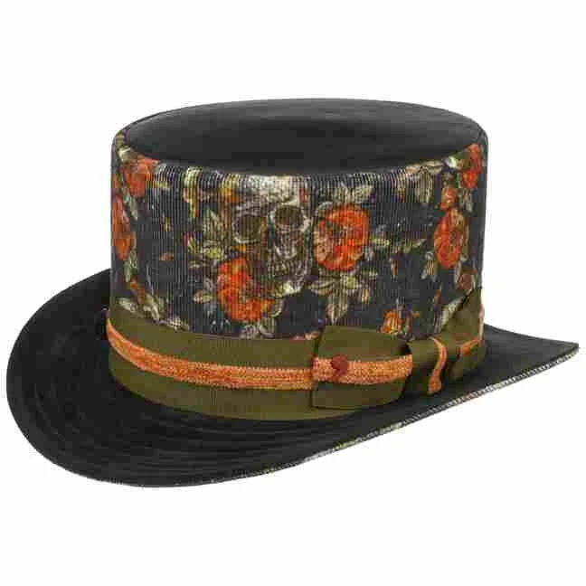 Herschauen erlaubt. Bei besonderen Anlässen weiß der Steampunk-Zylinder von Alfonso D´Este zu überzeugen. Sein extravaganter Look setzt sich aus einer Krone im Brokatmuster, einer samtig schimmernden Krempe und einer zweifarbig gestreiften Ripsbandschleife zusammen. Natürliches Leder und atmungsaktive Baumwolle geben den komfortablen Materialmix für den ausgefallenen Hutklassiker ab. In Italien von Hand gefertigt.