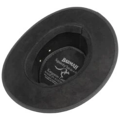 Ohne seine Form zu verlieren, lässt sich dieser flachköpfige Hut aus authentischem Känguruleder klein falten. Die Verarbeitung wird australischen Tierschutzrichtlinien gerecht, darüber hinaus ist der Hut mit einem komfortablen Stretchinnenband ausgestattet. Wasserabweisende Eigenschaften und UV-Schutz sorgen für ganzjährigen Tragekomfort. Flecken und Kratzer auf dem Känguruleder gelten aufgrund der rauen australischen Umgebung als natürliche Erscheinung. Achtung: Dieses Modell fällt bis zu einer Nummer kleiner aus! Beispielsweise entspricht Größe L etwa 57-58 Zentimetern.
