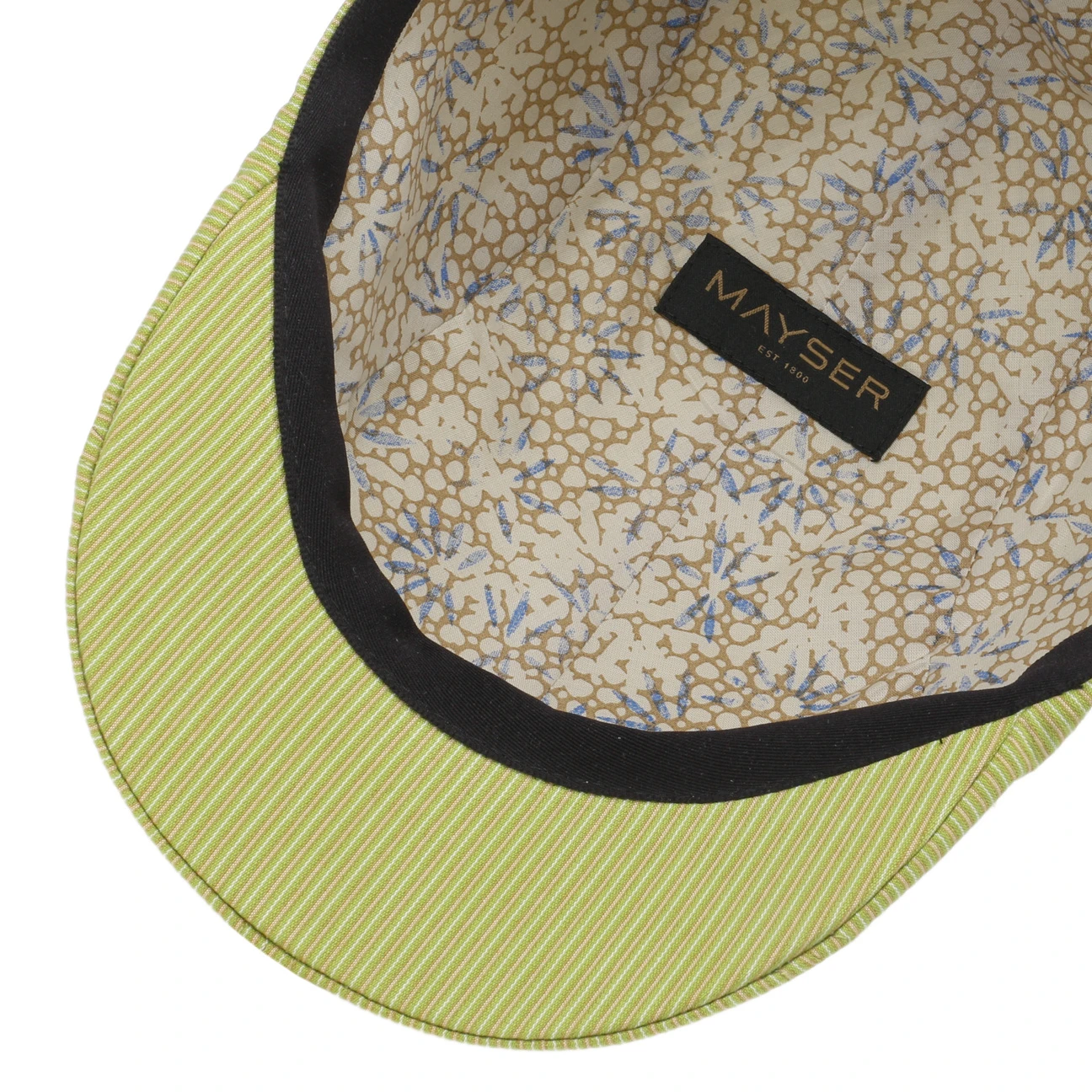 Beste Sommerstimmung. Das feine Streifenmuster in sommerlichen Farben lässt die Flatcap von Mayser mit der Sonne um die Wette strahlen. Das Obermaterial besteht aus atmungsaktiver Baumwolle und leichter Viskose und stattet die von Hand gefertigte Schiebermütze mit bequemen Trageeigenschaften aus. Das Futter aus 100% Baumwolle trägt zusätzlich zum hohen Komfort bei. Hergestellt in der EU.