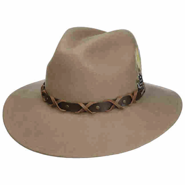 Authentisch und selbstbewusst. 100% Wollfilz in VitaFelt-Qualität stattet den Traveller von Stetson mit strapazierfähigen und wasserabweisenden Eigenschaften aus. Ein ledernes Garniturband mit aufwendigem Dekor verleiht ihm einen selbstbewussten Wild-West-Charme, der sich vielseitig zur Outdoorgarderobe kombinieren lässt. In knitterfrei knautschbarer Qualität lässt sich der Filzhut sogar platzsparend im Gepäck verstauen. Made in the USA.