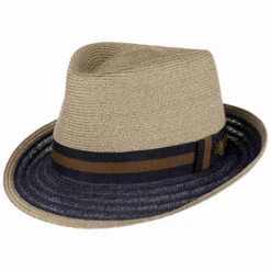 Echte Sommergefühle weckt der Trilby von Michael Zechbauer by Mayser. Aus einer ausgeklügelten Mischung aus robustem Hanf und hautfreundlicher Baumwolle gefertigt, überzeugt er mit lässigem Charme und federleichtem Komfort. Doch neben seinen inneren Werten beeindruckt auch das elegante Twotone-Dessin, von dem sich eine harmonisch gestreifte Garnitur aus Rips extravagant absetzt.