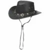 Aus reinem Stroh besteht der Cowboyhut aus dem Hause Stetson, der durch seine markante Form überrascht. Die geschwungene Einfassung der Krempe, die hohe Krone und die Ledergarnitur sind seine bestimmenden Designelemente. Dazu überzeugt er auch auf praktischem Gebiet: nicht nur durch seinen atmungsaktiven Tragekomfort, sondern auch durch das überaus nützliche Kinnband.