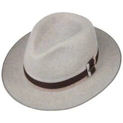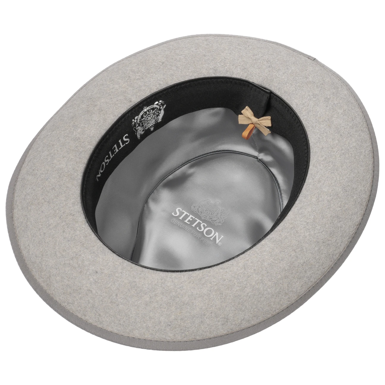 Die weiche Krempe und die eingekerbte Krone machen den Fedora zum unverwechselbaren Begleiter vieler Gelegenheiten. Das Modell aus dem Hause Stetson, traditionell aus dem Filz von Tierhaar gefertigt, bietet neben einer griffigen Haptik und herausragendem Tragekomfort stilsicheres Auftreten und ein konsequentes Dessin in zwei Farbtönen, die sich hervorragend ergänzen. Zahlreiche Outfits lassen sich mit seiner Hilfe perfektionieren.